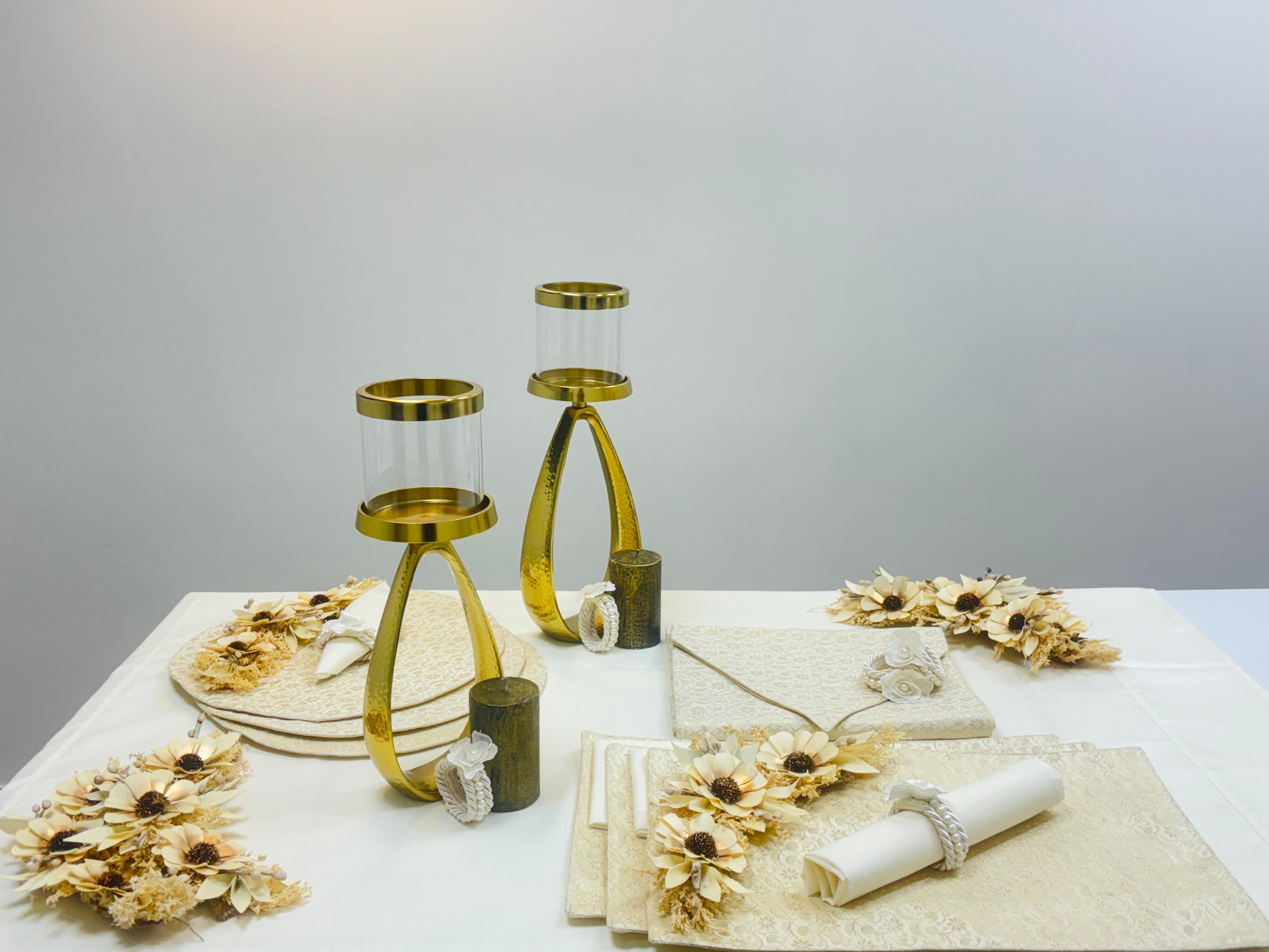 - Gloden Hammered Candlestand- 6" x 4.5" x 16", 5" x 4.5" x 14.5"